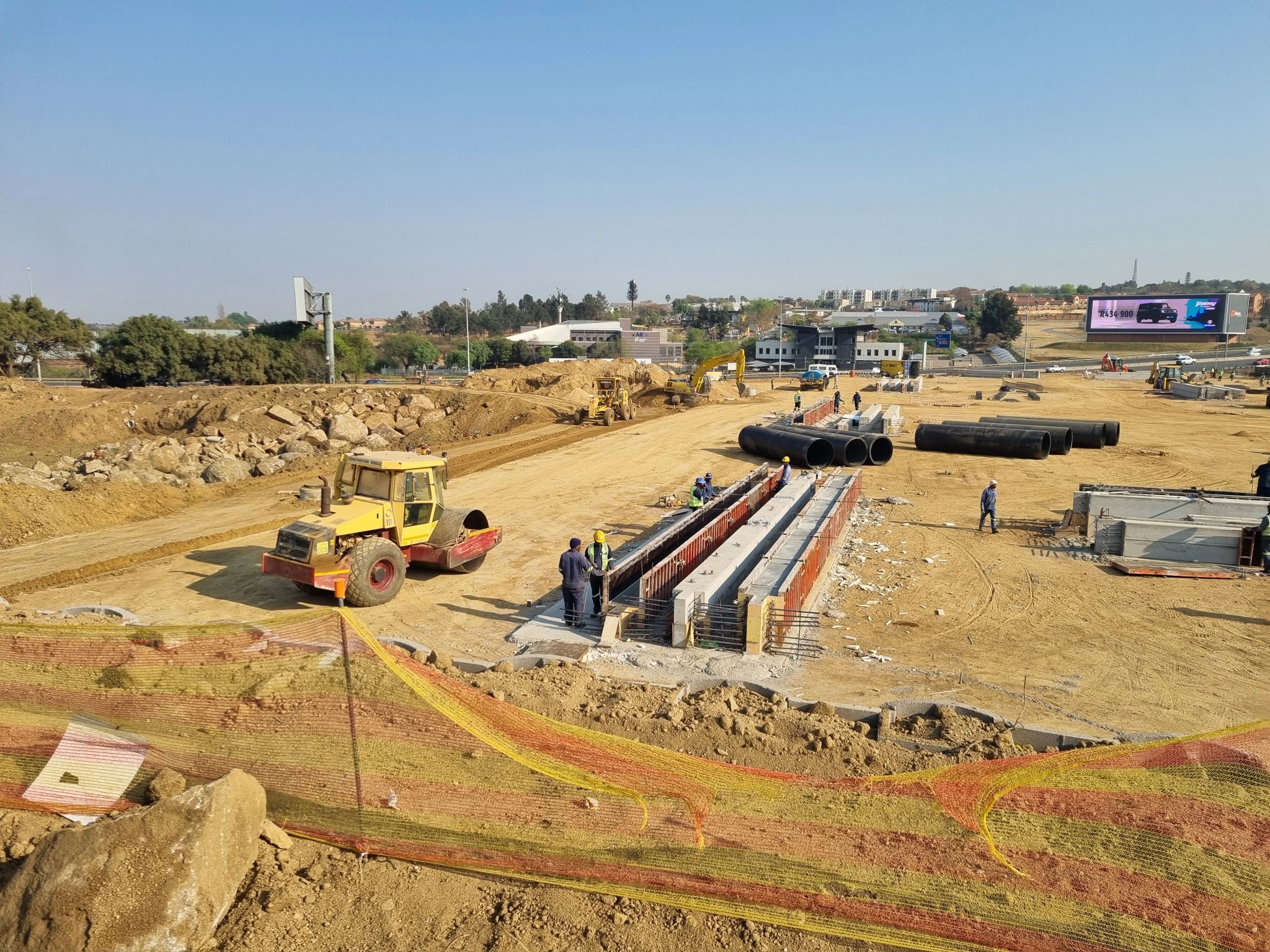 Included the construction of a warehouse platform, the rehabilitation of an existing silted dam, the supply and installation of underground services, and the construction of Link Road betweem two business parks.